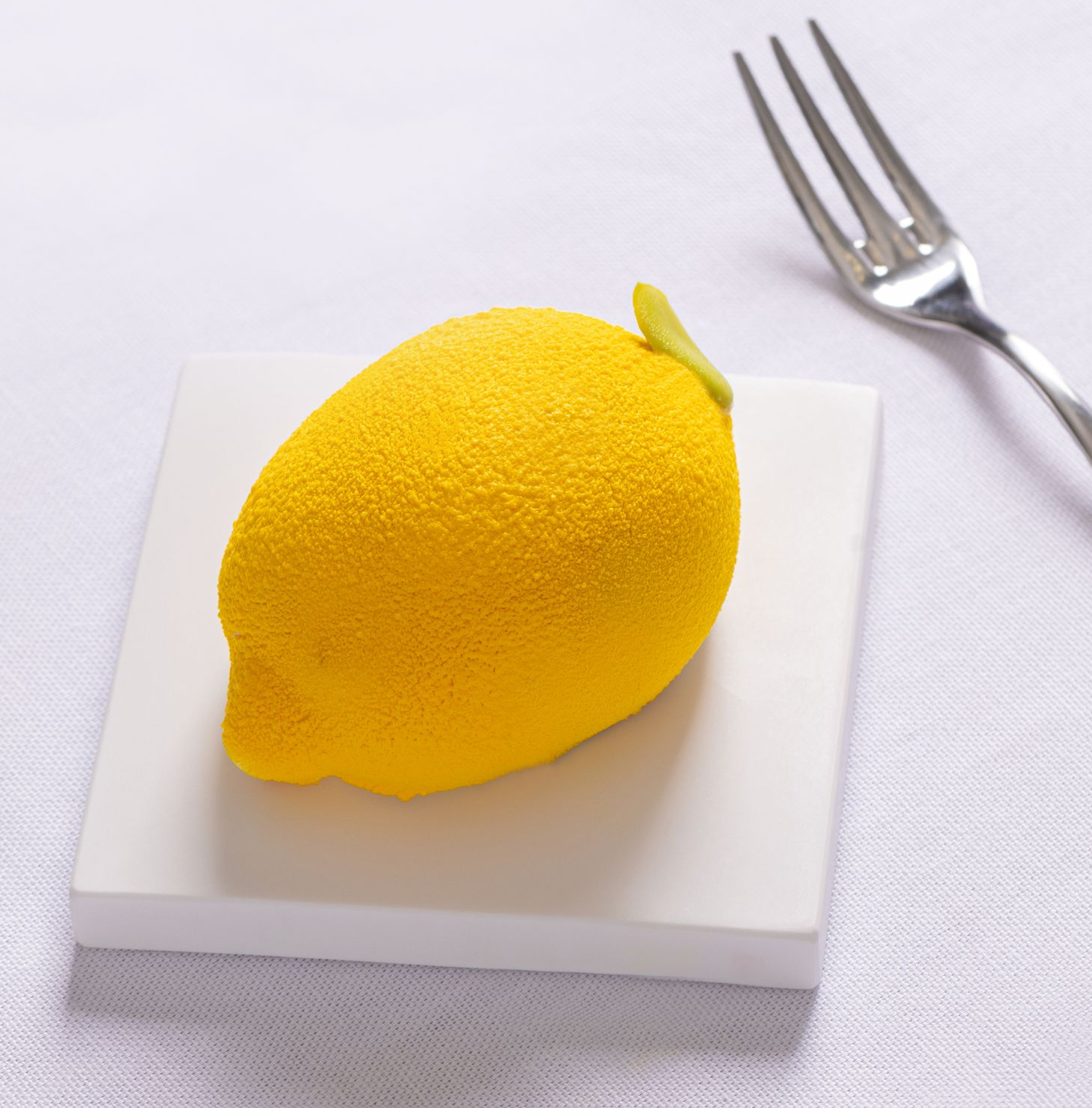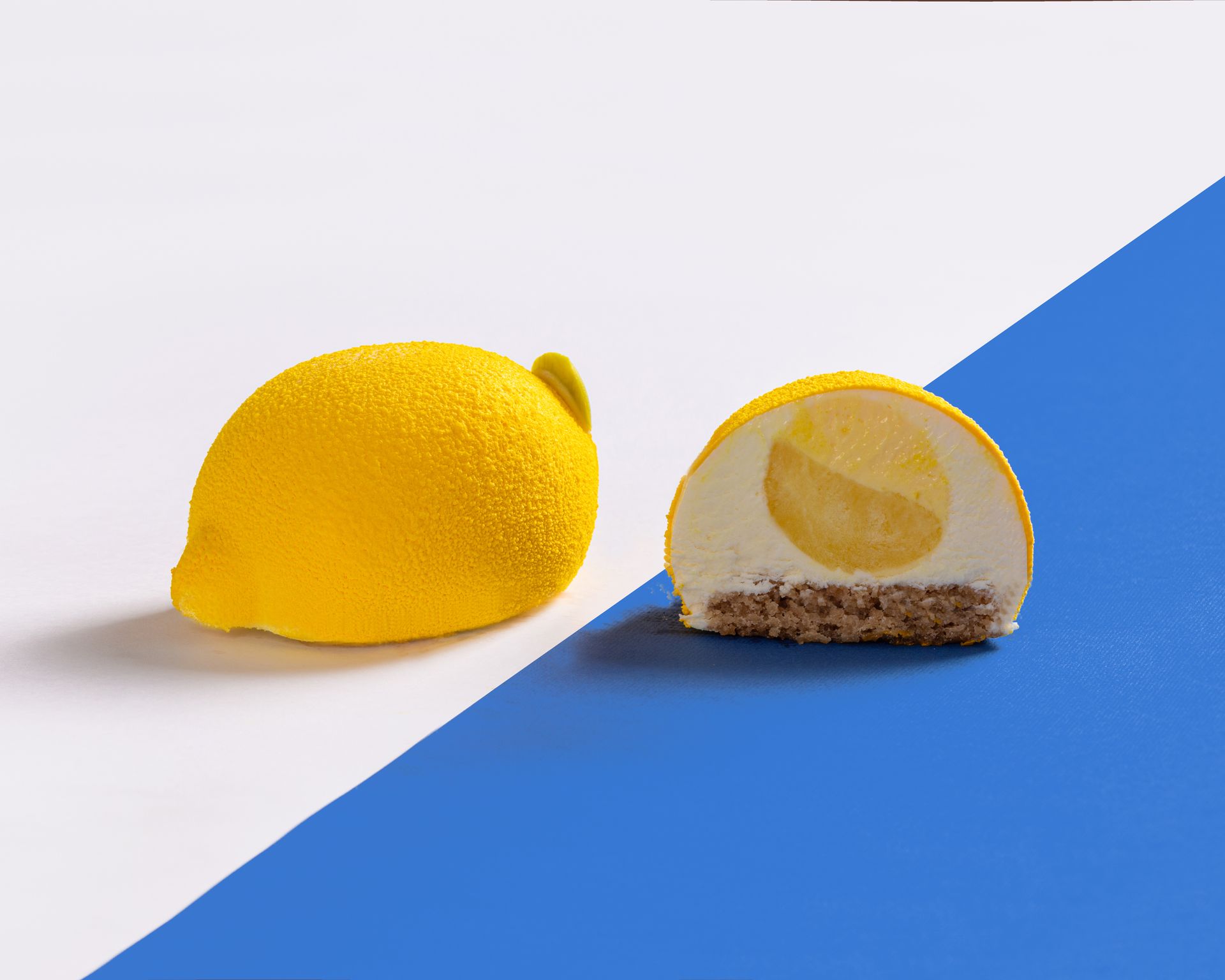 Delicata mousse al limone, che racchiude un cremoso cuore di limoni, il tutto adagiato su una base di financier alla nocciola, conferendo un perfetto equilibrio tra acidità e dolcezza.